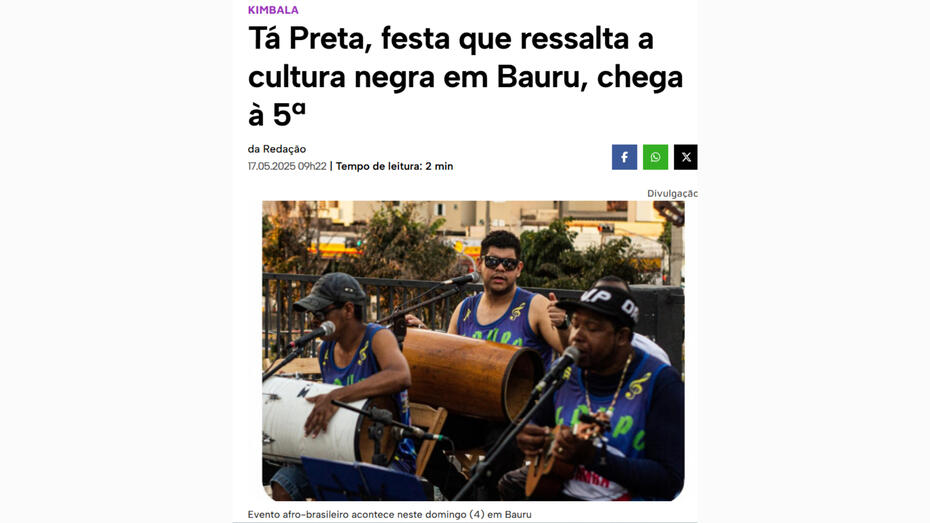 Atuação como coordenadora da assessoria de imprensa do Kimbala Baile, evento realizado em Bauru em celebração ao Dia da Consciência Negra. Exerci a liderança e supervisão da equipe de assessoria, sendo responsável pela criação e gestão do mailing, orientação editorial dos redatores de releases e relacionamento direto com jornalistas. A estratégia de comunicação resultou em ampla cobertura regional e nacional, com destaque em veículos como Alma Preta e Globoplay.